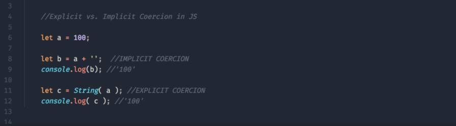 Javascript Coercion Explained Along with some practical examples Before we begin our JS Coercion exploration it’s worthy to note that this post exists because JS is an untyped language(maybe weakly-typed based upon your definition). Typed Language A stro