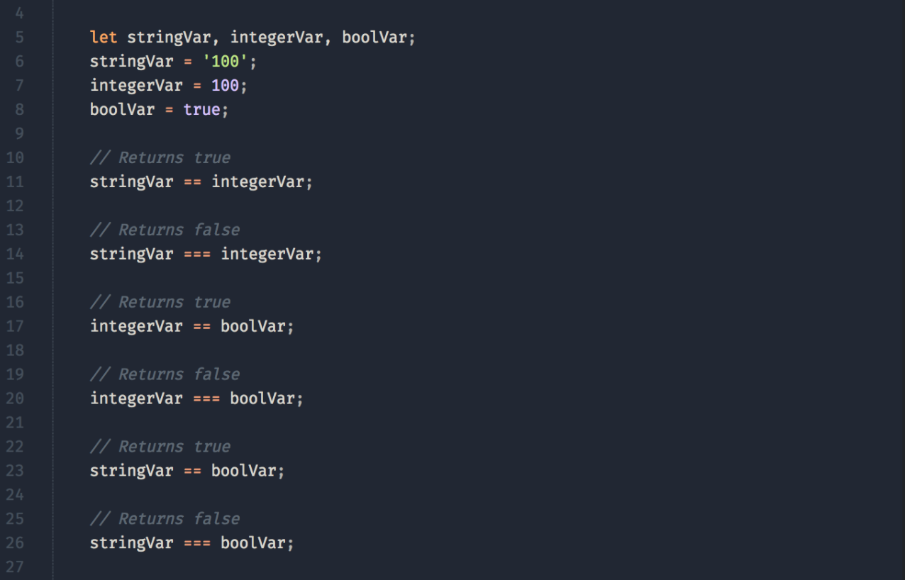 ์ด์ JS๊ฐ ==์ ===๋ฅผ ์ฌ์ฉํ์ฌ ๋ฐ์ดํฐ ํ์ ๊ฐ ๋น๊ต๋ฅผ ์ด๋ป๊ฒ ์ฒ๋ฆฌํ๋์ง, ์ธ์ null๊ณผ undefined๋ฅผ ์ฌ์ฉํ๋์ง ์ดํด๋ณด์.