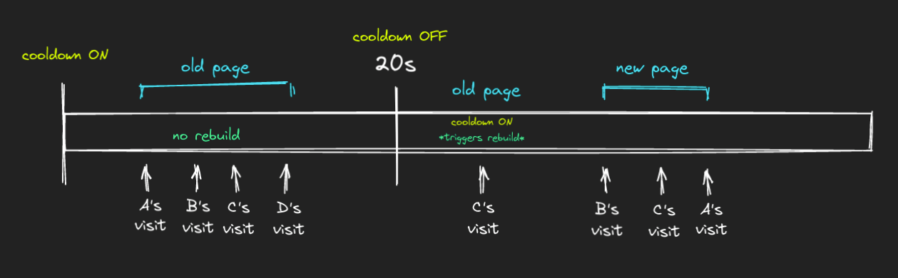 - The first reload does not have to be a full reload, we can go back to the home page, then to that page again (revisit), it will trigger the rebuild as long as we are not in the cooldown state.