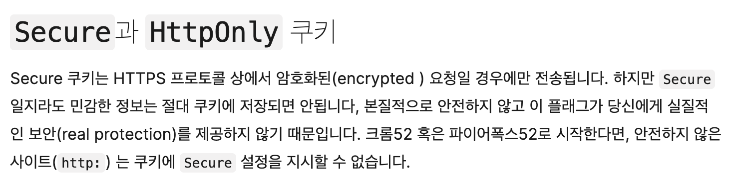 https://developer.mozilla.org/ko/docs/Web/HTTP/Cookies#secure%EA%B3%BC_httponly_%EC%BF%A0%ED%82%A4